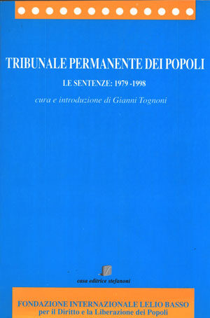 Questa raccolta di sentenze del Tribunale Permanente dei Popoli (TPP) viene proposta nel 20° anniversario della morte del suo ideatore e fondatore, Lelio Basso. Molte delle linee di fondo che via via si sono espresse lungo le tante sessioni e sentenze che hanno affollato primi decenni di attività del TPP possono essere ricondotte alle sue intuizioni ed esperienze di pensiero ed azione. Elemento essenziale ed originale di Basso era pensare-agire la politica come esercizio di ricerca. Il TPP non è altro che il tentativo di fare di questa logica di ricerca condivisa una pratica visibile, comunicabile e fruibile; permanente come strumento istituzionale, estremamente flessibile ed innovativa in quanto portata a rispondere alla diversità della storia. La proposta di questo libro non è dunque solo quella di essere documentazione di fatti: è il resoconto di un progetto di ricerca e della storia del diritto dei popoli disegnata dal TPP.